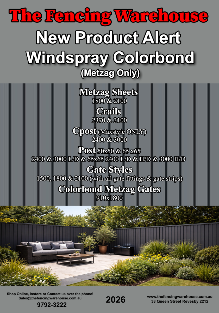 Built for long-lasting performance, Windspray delivers the low-maintenance benefits, durability, and visual appeal that make Colorbond fencing such a popular choice. Whether you’re a homeowner, tradie, or builder, this new addition gives you a stylish fencing solution without compromising on quality.