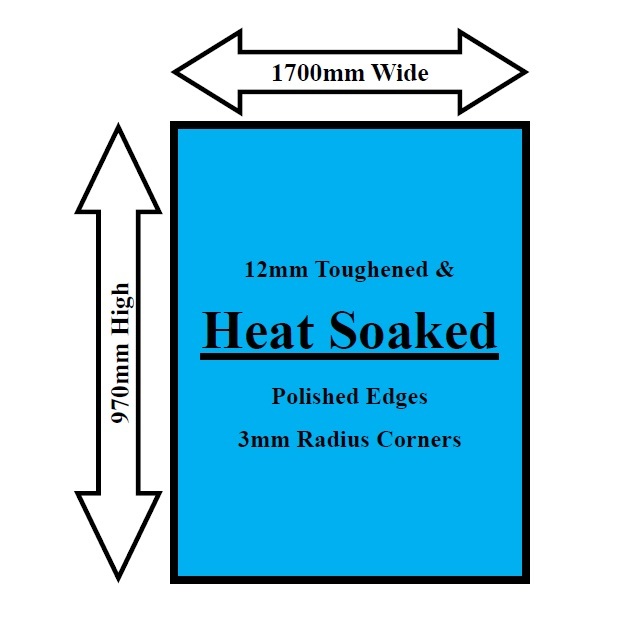 Balustrade glass 12mm, toughened and heat soaked, clear. Panel 1700mm x 970mm